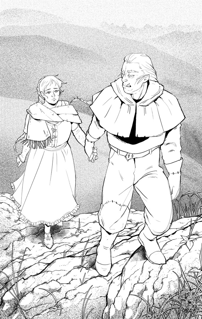 Illustrations for the novel of the same name, an orc pathfinder steals a peasant girl for himself.